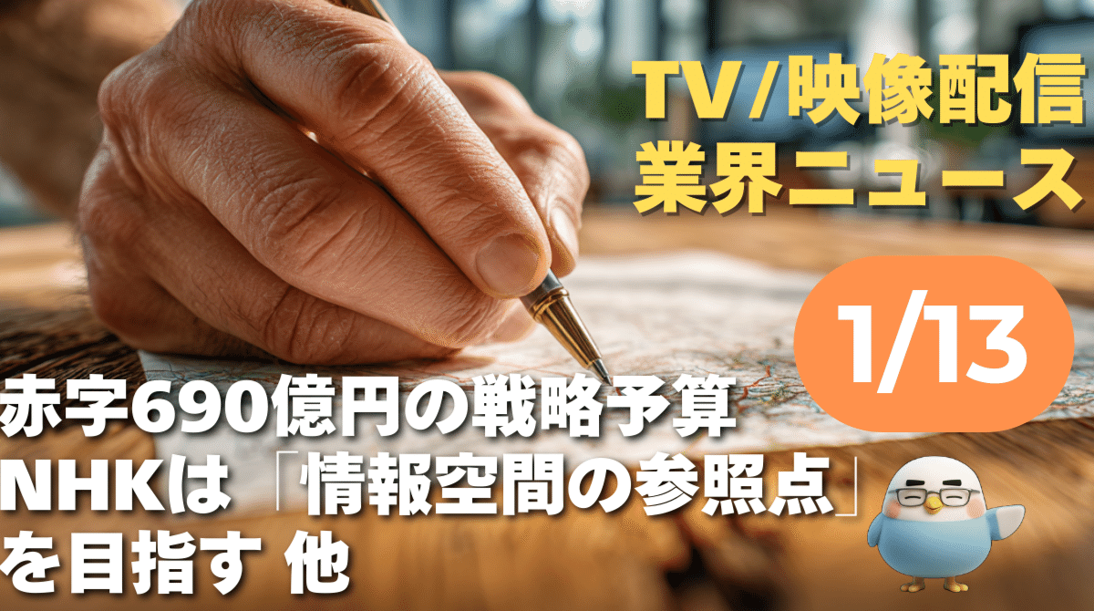 ディンコ・チャンネル 【NEWS 1月13日】赤字690億円の戦略予算。NHKは「情報空間の参照点」を目指す 他 話題のポイントを、わかりやすくAIの「音声」でお届けします。(SpotifyのPodcastのリンクは最後にあります) 続きをみる