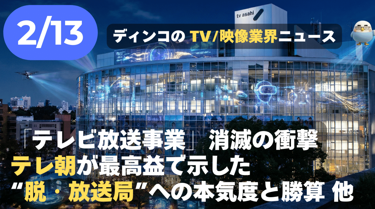 ディンコ・チャンネル 【NEWS 2月13日】『START UP テレ朝』始動。最高益で示した“脱・放送局”への本気度と勝算 他 話題のポイントを、わかりやすくAIの「音声」でお届けします。(SpotifyのPodcastのリンクは最後にあります) 続きをみる