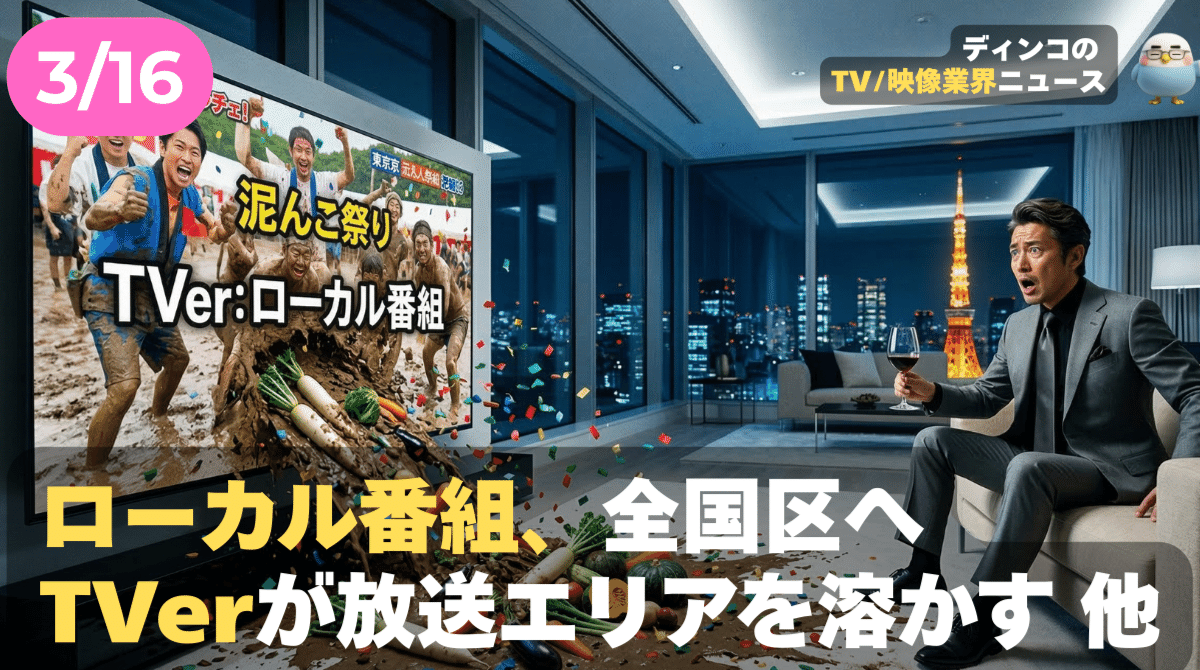 ディンコ・チャンネル 【NEWS 3月16日】ローカル番組、全国区へ。TVerが「放送エリア」を溶かす 他 話題のポイントは音声で!、(AI音声のため、読み上げに誤りが生じることがあります。あらかじめご了承ください。音声だけのPodcastリンクは最後に! ) 続きをみる